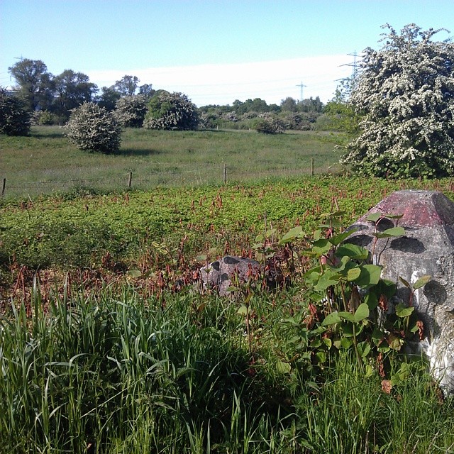 der japanische staudenknöterich wuchert am rande des baturschutzgebiets.